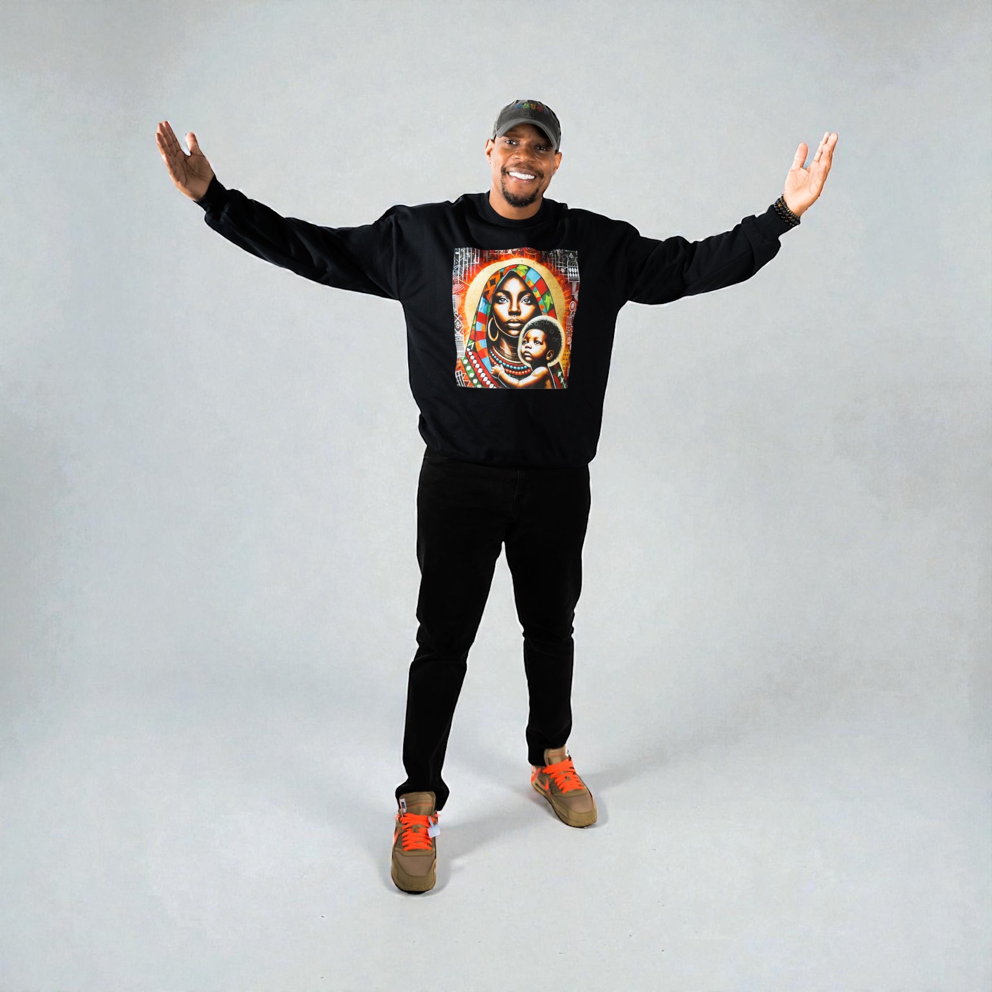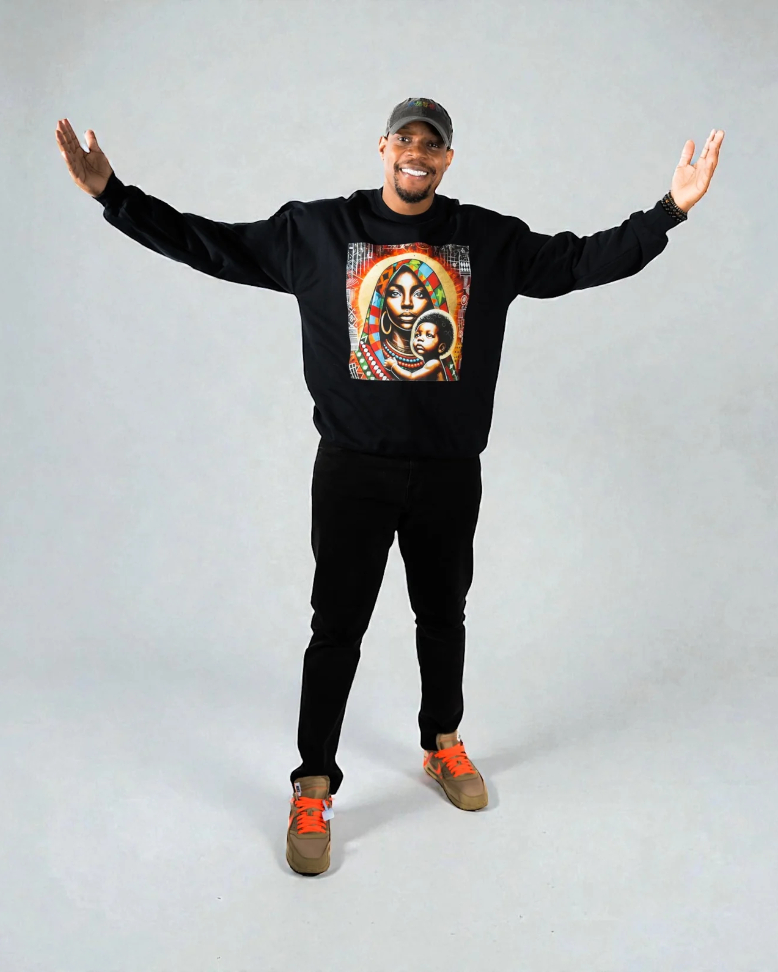 Anointed Mother and Child is a stunning celebration of divine motherhood, reimagined through an Afrocentric perspective. This design honors the sacred role of a mother as a nurturer, protector, and source of life. Adorned with vibrant kente-inspired patterns and regal gold accents, the mother exudes strength and grace, while the child radiates innocence and promise, a symbol of hope and the future.