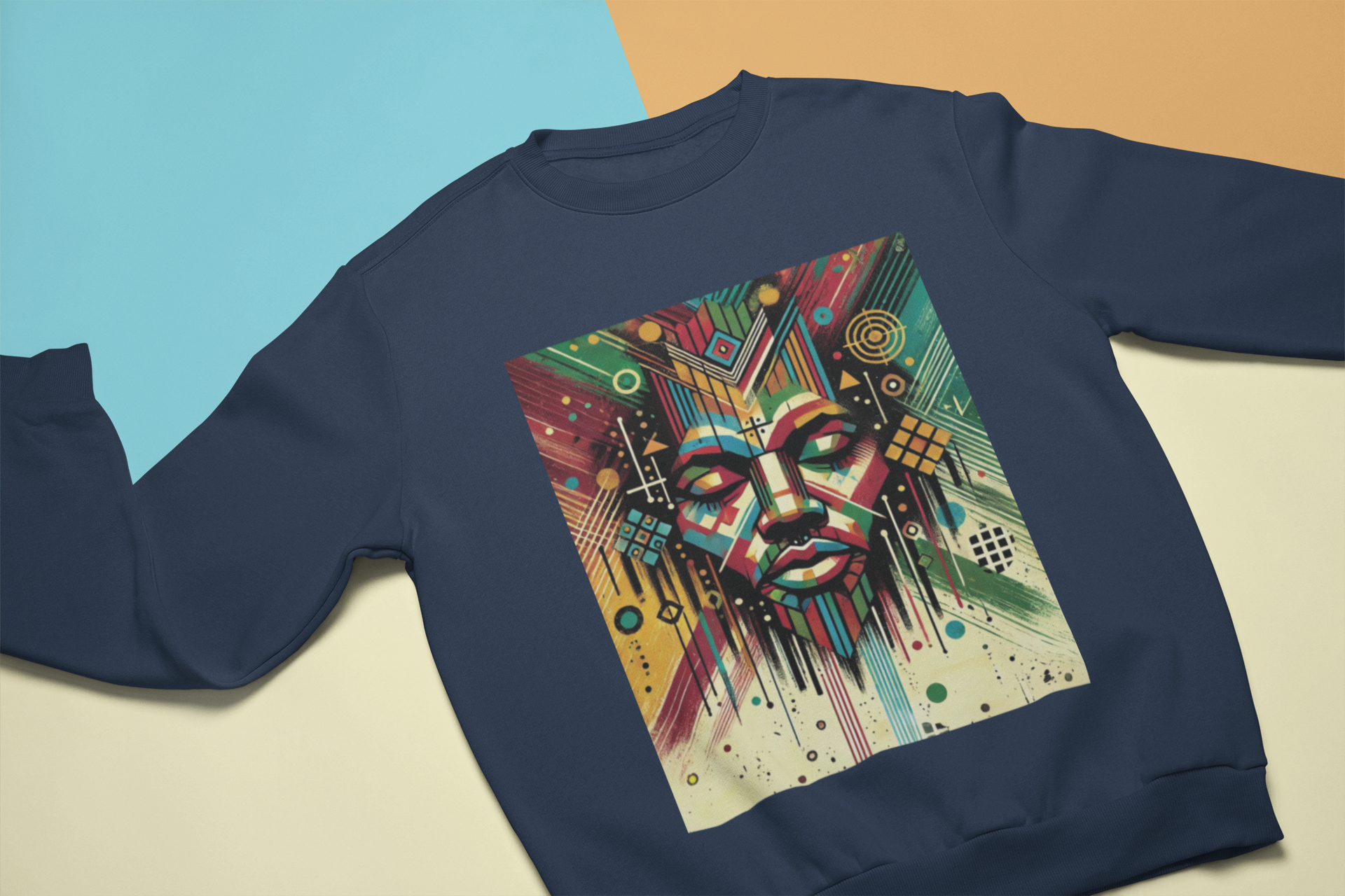 Embrace the fusion of spirituality, heritage, and modern urban aesthetics with this striking representation of King Jesus. This design features an abstract portrait of a Black Jesus, rendered in bold, Afrocentric street-art style. Vibrant geometric shapes and rich, multicolored patterns intertwine to symbolize the majesty and divine authority of Christ, while celebrating cultural pride.